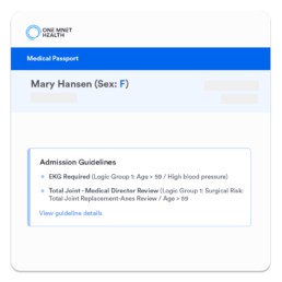 Medical Passport+ does the heavy lifting of comparing patient health data and procedure type with your facility’s specific admission criteria.